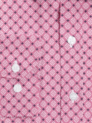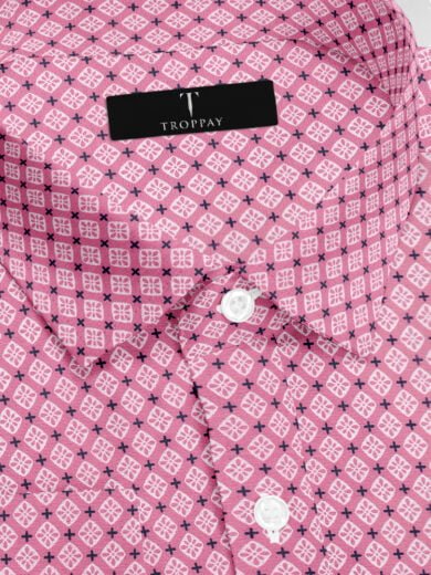 Upgrade your wardrobe with our Pink Tailored Smart Fit Shirt with White and Black Printed Design and experience the ultimate style statement for yourself!